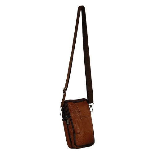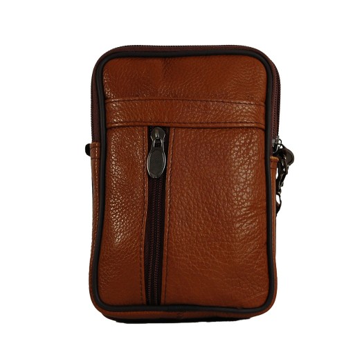 Genuine Leather Crossbody Bag with double zippered compartments & zippered pocket
