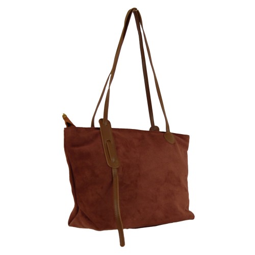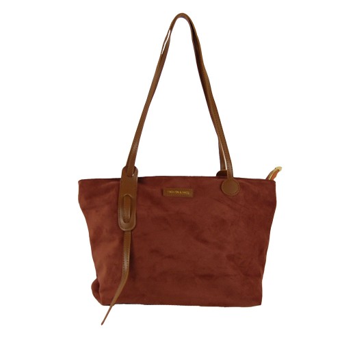 Handbag with suede type of material.